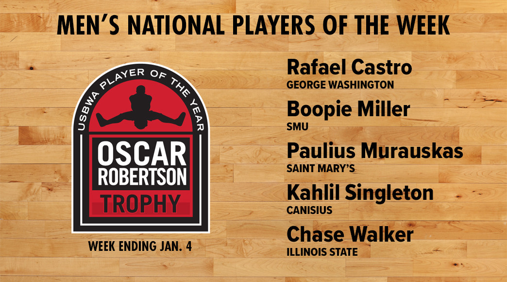 • Week ending Jan. 4: Rafael Castro, George Washington; Boopie Miller, SMU; Paulius Murauskas, St. Mary's; Kahlil Singleton, Canisius; Chase Walker, Illinois State.
